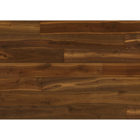 Le parquet ter Hürne Chêne Fabron se distingue par sa couleur chêne fumé, un brun chaud aux nuances ambrées qui apporte élégance et authenticité à tout intérieur. Sa surface brossée met en valeur les veines naturelles du bois, tandis que la finition à l’huile Nature Protec Olio offre un rendu mat et chaleureux, très naturel.
